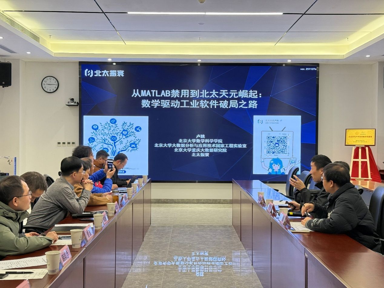 (通訊員 董灝)2025年12月12日上午,西安電子科技大學與北太振寰(重慶)科技有限公司共建的“北太天元產(chǎn)學研創(chuàng)新示范基地”揭牌儀式在西電南校區(qū)室舉行。該基地依托學校數(shù)學與統(tǒng)計學院建設,旨在推動國產(chǎn)科學計算軟件的研發(fā)與應用,服務國家科技自立自強戰(zhàn)略。北太振寰(重慶)科技有限公司董事長盧朓、高級銷售經(jīng)理王卓、產(chǎn)品設計部經(jīng)理歐陽曉臻,我校數(shù)學與統(tǒng)計學院院長薄立軍、副院長王曉華、副院長高衛(wèi)峰及師生代表20余人參加了揭牌儀式。