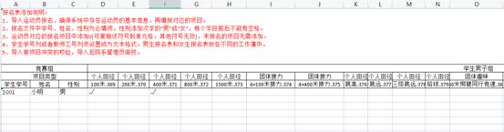 (3)將參賽學(xué)生學(xué)號、姓名、性別填寫到文件中,并勾選學(xué)生所報項目。
