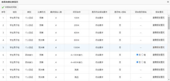 個人項目,點擊行末‘查看報名情況’添加運動員。如果報名參加團體項目,需確認“團體報名”(上圖紅框位置),如果未確認,即使為該項目添加運動員,系統(tǒng)將認為未報名參加該團體項目。