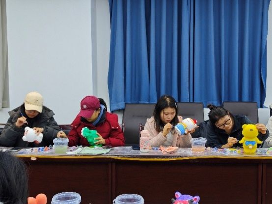 在手工創(chuàng)作的悠然時光里,同學(xué)們以指為筆,以心為墨,沉浸于創(chuàng)作的樂趣中。這份專注不僅讓緊繃的神經(jīng)悄然放松,更在無形中舒緩了日常學(xué)業(yè)帶來的壓力。而在手工制作的間隙,同學(xué)們圍坐一起,輕聲細(xì)語地分享著彼此的故事與心得。這份輕松愉快的交流,如同溫暖的陽光,悄然拉近了心與心的距離。“平日里,我們總是埋頭于實(shí)驗(yàn)室的忙碌,難得有這樣閑適的時刻,能邊做著手工,邊暢所欲言。”許雅婷同學(xué)的話語中充滿了感慨,她的話語也道出了大家的心聲。