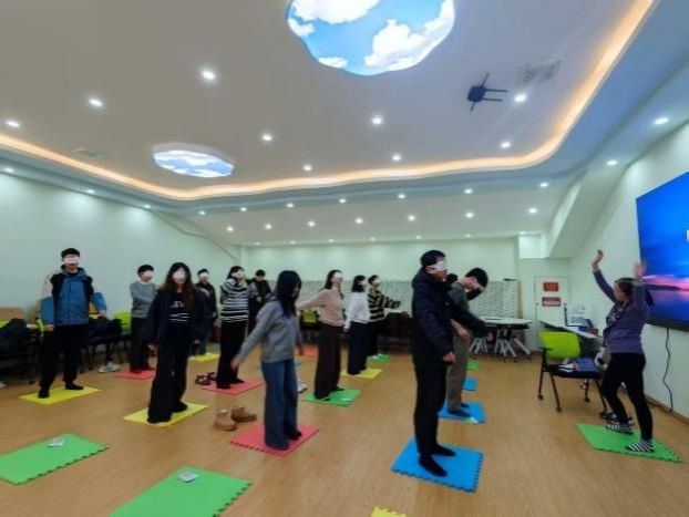 伴隨舒緩的音樂(lè),老師帶領(lǐng)大家進(jìn)行呼吸調(diào)整與漸進(jìn)式身體放松練習(xí)。借助引導(dǎo)語(yǔ),同學(xué)們逐漸將意識(shí)從外部轉(zhuǎn)向自身,細(xì)致感知呼吸的節(jié)奏與身體的細(xì)微變化。參與同學(xué)分享道:“當(dāng)閉上雙眼、專注呼吸時(shí),外界的紛擾仿佛悄然遠(yuǎn)去,我終于能夠清晰聽(tīng)見(jiàn)自己內(nèi)心的聲音。”這種身體與心靈的雙重打開(kāi),讓參與學(xué)生真正體會(huì)到了與自我對(duì)話的奇妙感受。