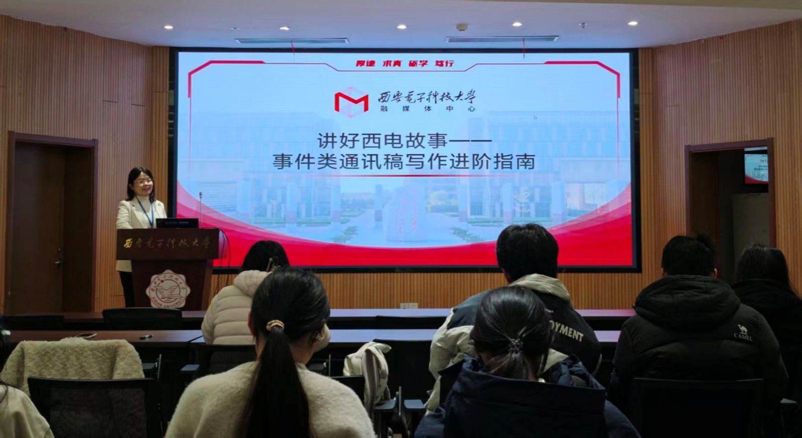 (通訊員 苗軒滔)為進(jìn)一步提高學(xué)院學(xué)生骨干的媒介素養(yǎng),提升新聞寫作與攝影水平,12月17日下午,學(xué)院于南校區(qū)開展2025年“青馬工程”大學(xué)生骨干培訓(xùn)班第三期培訓(xùn)課程,特邀學(xué)校黨委宣傳部蒙少華、侯坤晨兩位老師進(jìn)行新聞宣傳實(shí)用技能專題培訓(xùn)。學(xué)院各年級(jí)學(xué)生骨干參加培訓(xùn),活動(dòng)由學(xué)院本科生輔導(dǎo)員、大骨班負(fù)責(zé)人白揚(yáng)華老師主持。