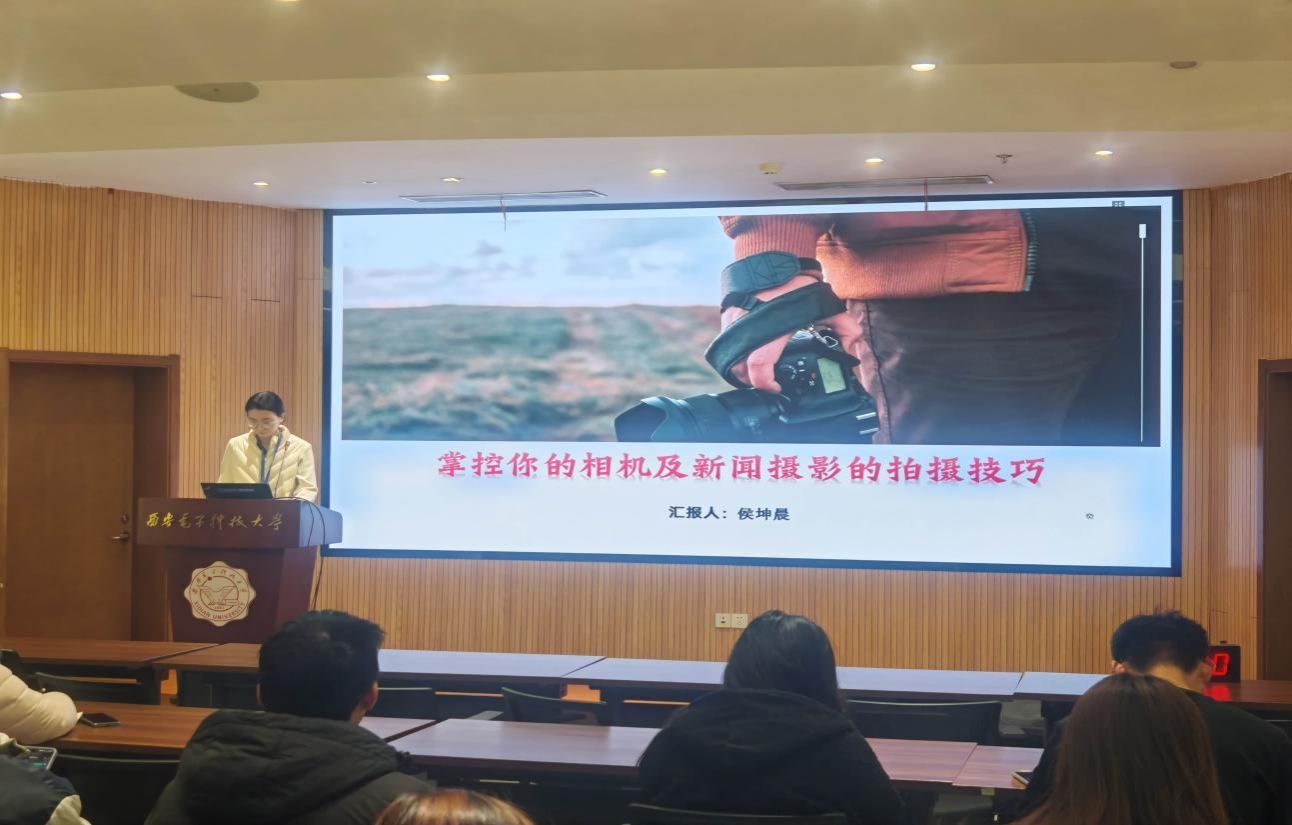 侯坤晨首先分享新聞攝影技巧,從攝影基礎(chǔ)入手,系統(tǒng)講解了構(gòu)圖原則、光線把握、視角選取及設(shè)備應(yīng)用等關(guān)鍵技巧。通過“三分法”與“黃金角度”經(jīng)典理論的介紹,并結(jié)合大量實(shí)際案例,侯坤晨引導(dǎo)同學(xué)們掌握如何通過鏡頭語言營造畫面層次、突出表達(dá)重點(diǎn),并分享了不同場景下的拍攝建議與基礎(chǔ)后期處理方法,助力大家更生動(dòng)地記錄組織活動(dòng)和校園生活。